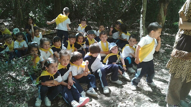 Tras la breve peli, nos adentramos en el bosque hasta llegar a un rincón mágico, el rincón de los cuentos, donde muy atentos escuchamos la historia de las abejas y la miel.